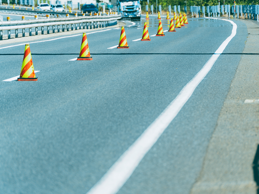 高速道路の安全を支える、確実な走行車線規制。