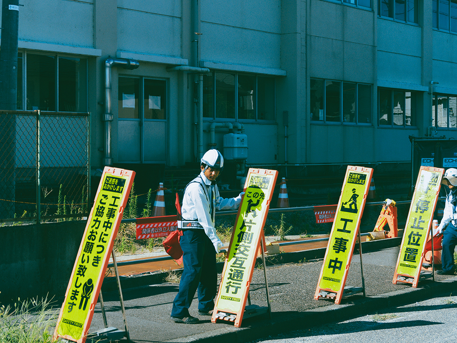 主に建設・土木工事の現場で、通行車両の事故防止、歩行者・作業員の安全確保、工事による渋滞の防止を目的とした警備を行っています。工事による支障を最小限に抑え、円滑な交通の維持とスムーズな作業の進行をサポートします。また、地域住民への配慮を大切にし、通行人や車両への丁寧で的確な対応を徹底しています。通行止め・近隣対応・案内業務をはじめ、車線規制、歩行者誘導、片側交互通行、出入口誘導、注意喚起など、現場の状況に応じた柔軟な警備体制を提供します。