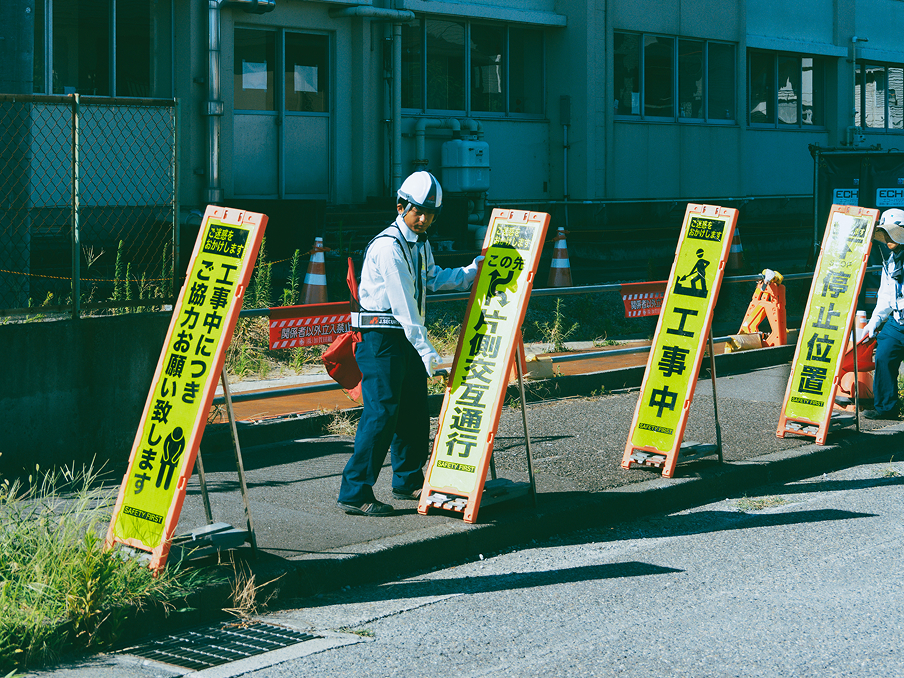 片側交互通行・通行止め・車線規制に必要な保安資機材(看板・カラーコーン・LED表示・バリケードなど)を現場に設置。施工会社の負担を軽減し、確実な視認性と誘導性を確保します。